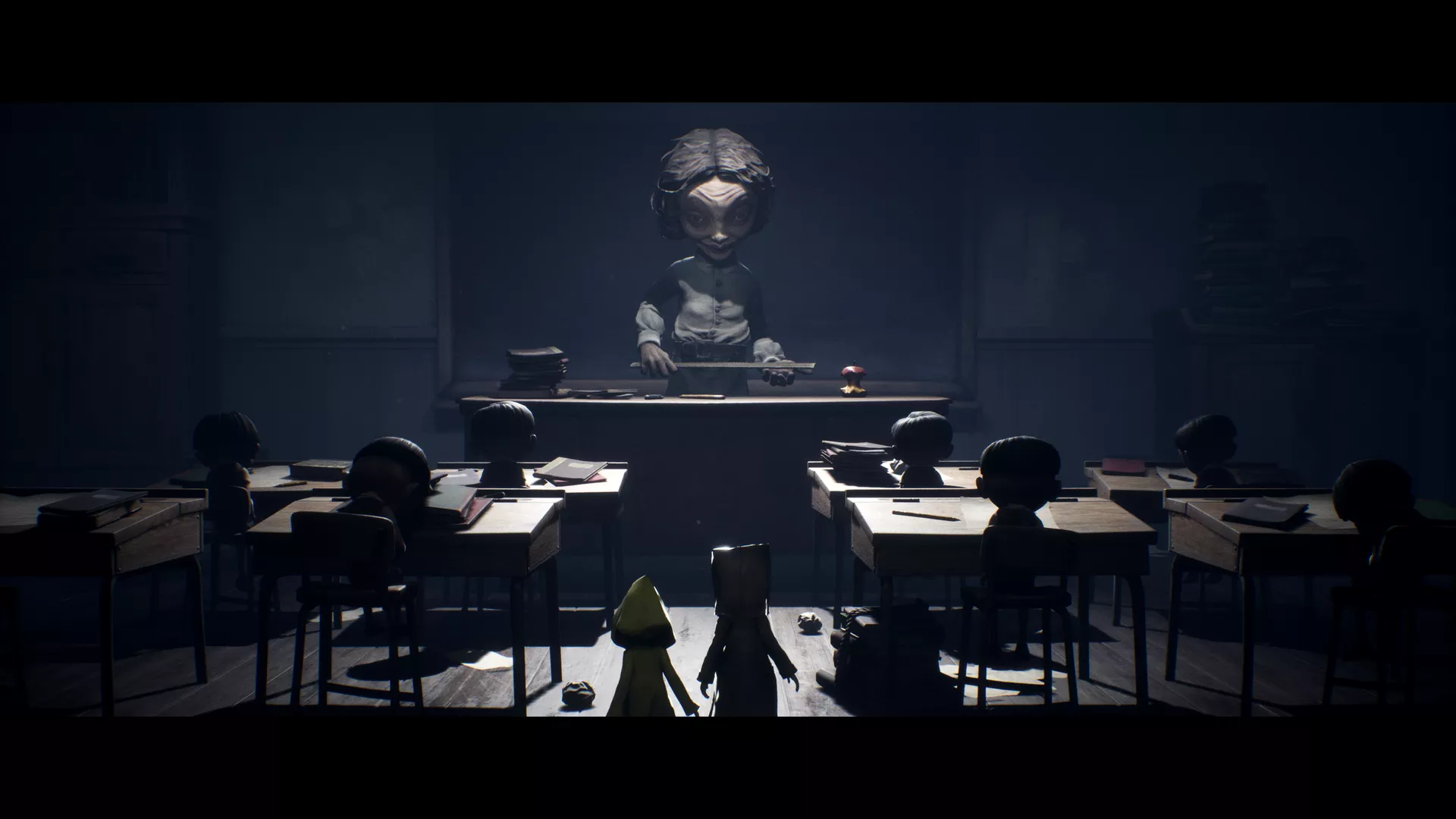 The haunted buildings within the city make up most of Little Nightmares 2’s levels. One of the levels is a school filled with deadly marionette students that will chase you on sight and a deranged teacher with an extendable, rubbery neck. Another section of the game is set in an abandoned hospital where mannequin patients are strewn throughout the building on gurneys, in wheelchairs, or sometimes just thrown limblessly in the hallways.